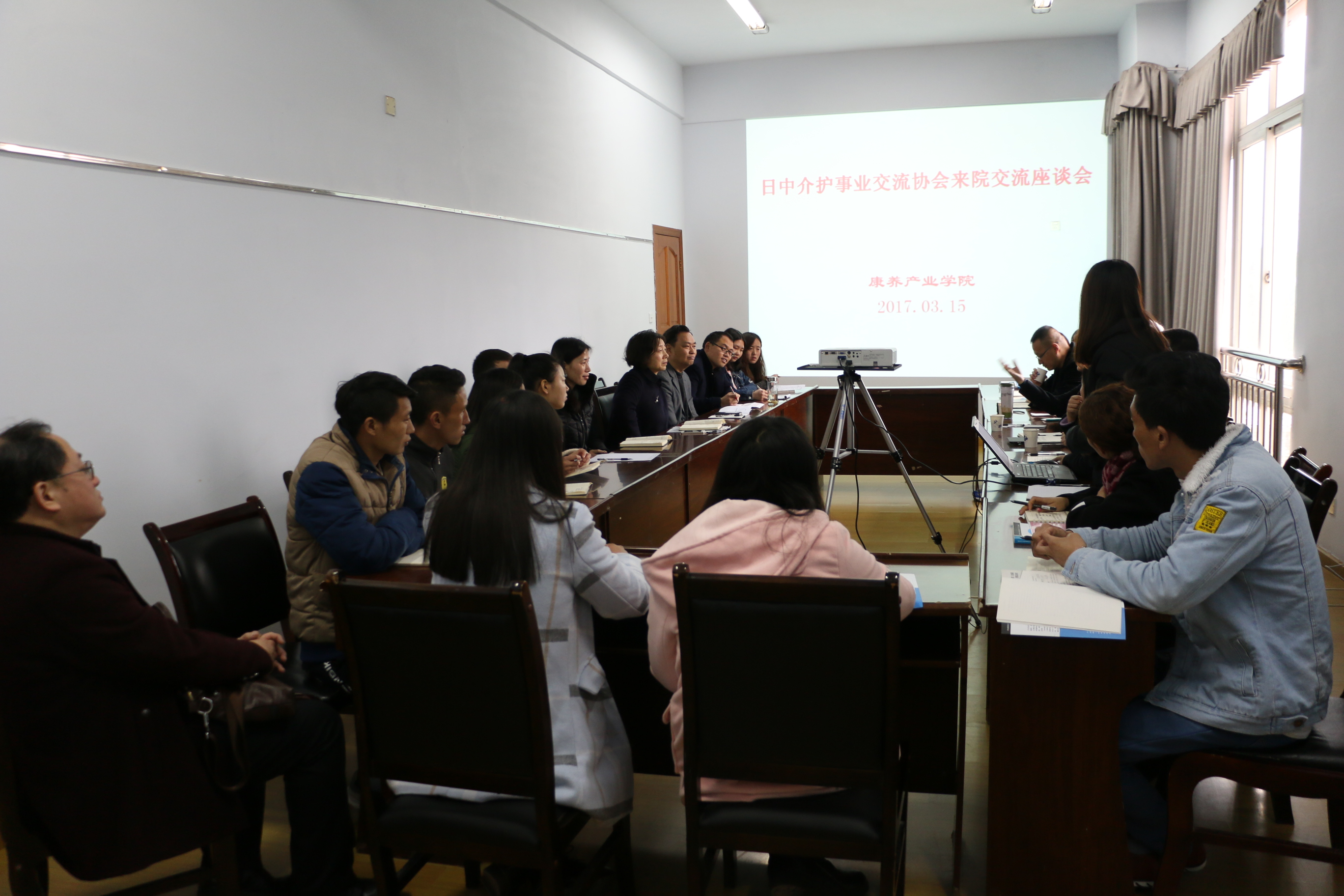 业交流协会专务理事小池正明莅临学院座谈交流。学院院长靳能泉、党总支副书记(主持工作)彭时敏及专业教师、2015级和2016级老年服务与管理专业部分学生参加了座谈交流会。