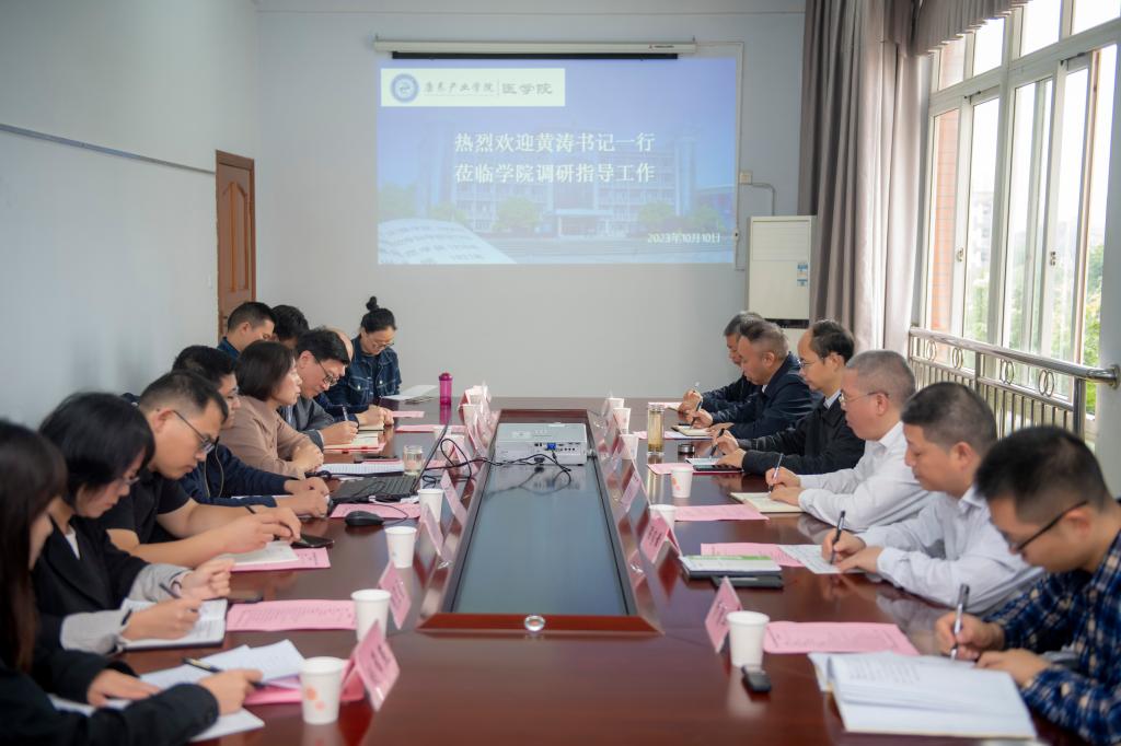 黄涛书记认真听取了学院工作汇报,对学院的工作给予了充分肯定,高度评价了学院勤学笃行、团结奋斗的办学风貌。黄涛指出,学院今后一要继续加强党建引领,充分发挥基层党组织的作用。二要强化人才驱动,做大做强师资力量。三要对标竞进,借鉴好的经验、做法推动学院快速发展。四要加强合作办学,集中优势资源,提高办学质量。五要加强科学研究,提高科学研究水平,要注重教学与研究共同发展。黄涛书记还强调,学院既要继承办学历史,又要发展开拓,首先大力发展康养医学、再逐步发展交叉复合型特色学科专业,并适时发展医学相关学科,将办学精神与医学文化紧密结合,大胆创新,以适应学校更好的发展。