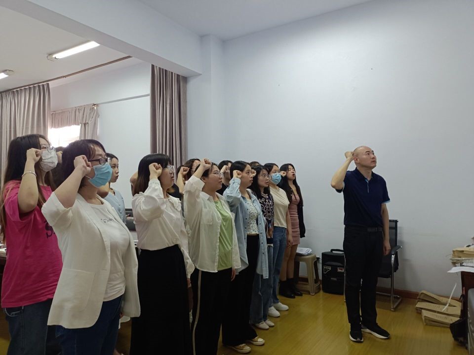 最后,屈川带领全体毕业生党员面向党旗重温入党誓词。
