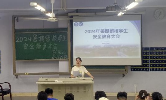 为进一步提高暑期留校学生的安全意识,切实保障暑期留校工作安全有序开展,7月3日晚上,我院组织全体留校学生在博文楼124教室召开了2024年暑期留校学生安全教育大会。学工办主任周宏星出席会议并讲话,全体专职辅导员、学生会劳生部成员及暑期留校学生参会。