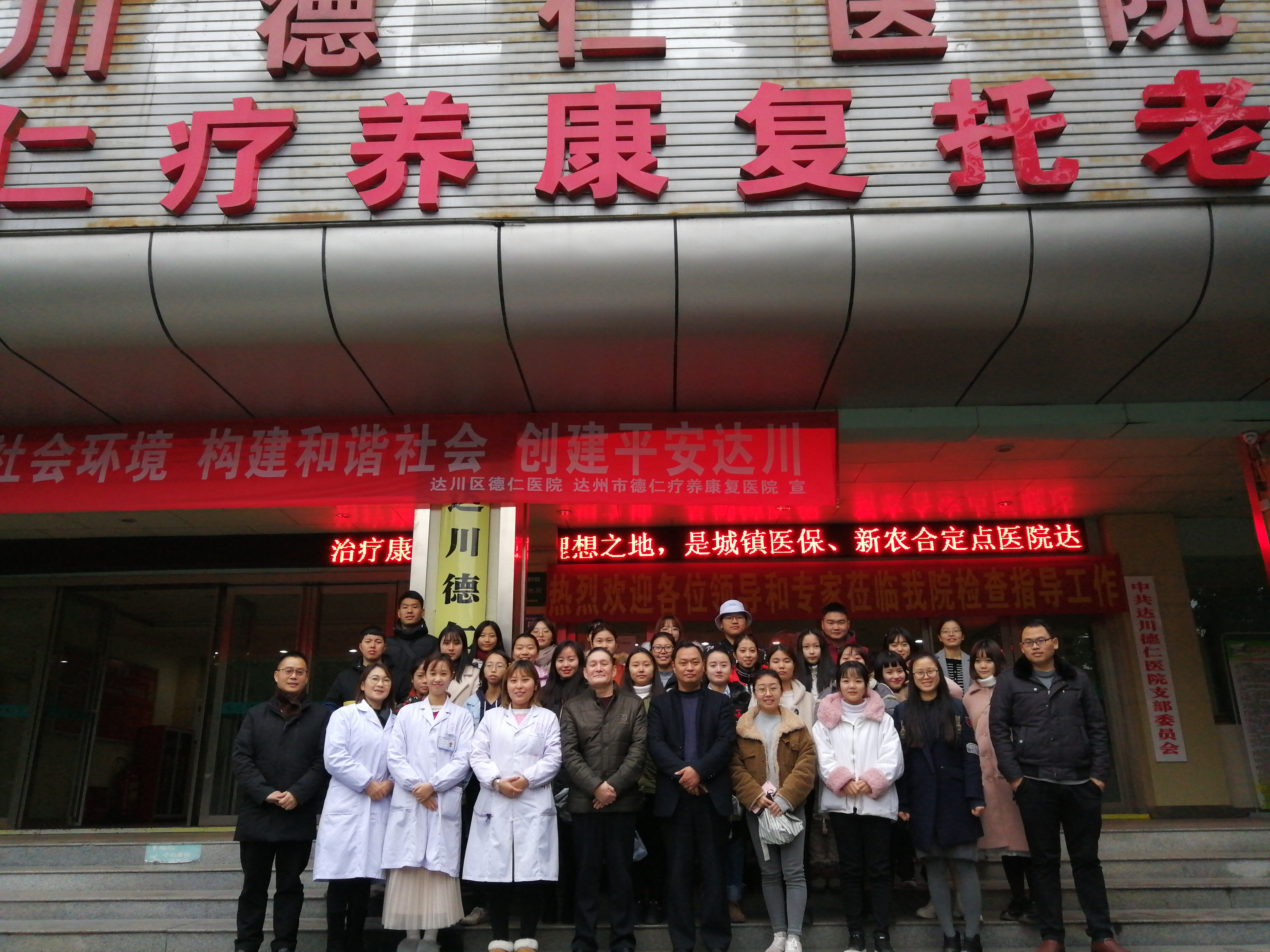 2018年12月3日至12月7日,学院2017级老年服务与管理专业在达州市德仁疗养康复托老院举行了为期一周的专业实习活动。学院院长靳能泉,健康服务与管理教研室主任张俊浦和专业老师崔俊营、刘孝英、叶盈等作为指导老师参加了实习总结会,达州市德仁托老院在家领导和带教老师参加会议。