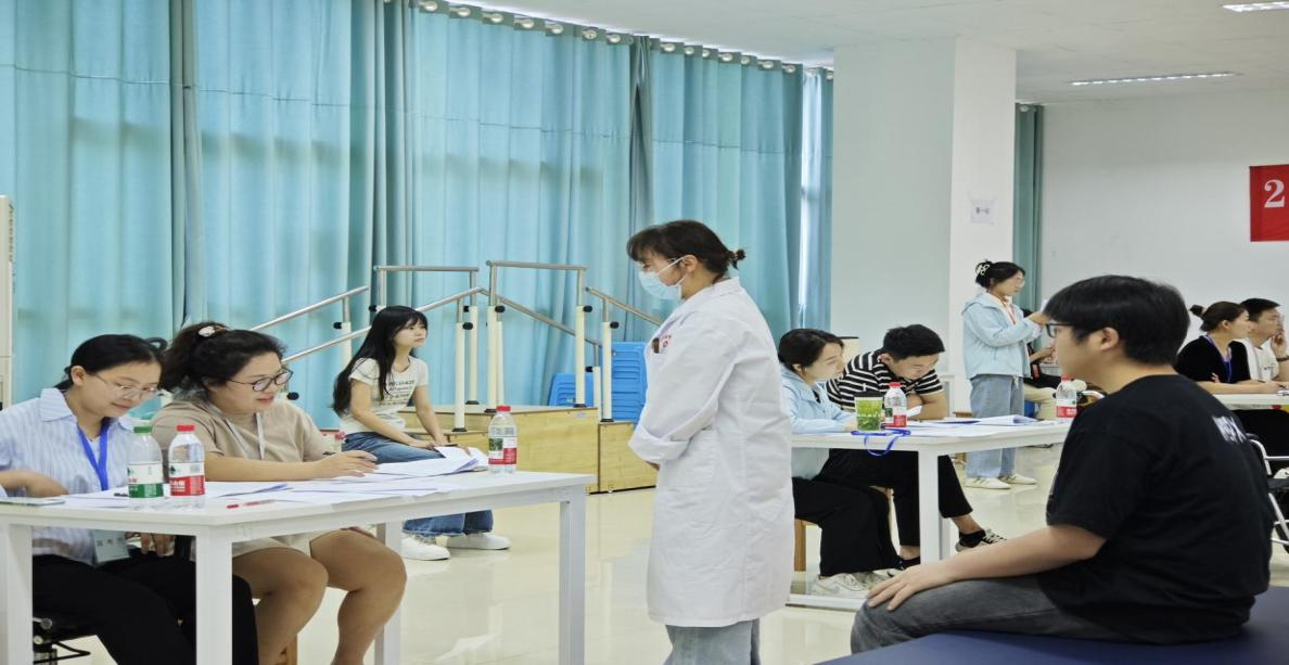 本次毕业考核兼顾理论和临床技能,重在考核毕业生的基本操作、临床技能和临床答辩能力。临床技能考核部分设置康复评定、康复治疗和疾病综合三个站点,由学院中级以上职称的专任教师及三甲医院康复科中级以上专业技术人员共同担任考官。考核现场,学生们根据所抽题目,对学生标准化病人依次完成模拟病例评估、治疗操作及综合康复方案制定,全面检验其理论运用与实践能力。考核过程严谨规范,学生表现扎实,展现了良好的职业素养与专业技能。
