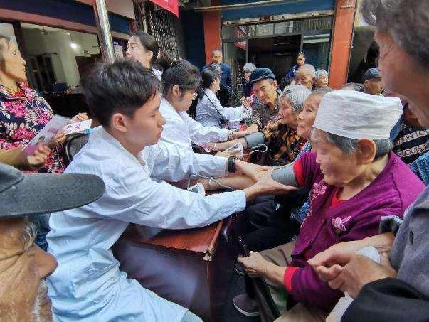 吴沛娟和杨婧老师结合实际案例,以通俗易懂的语言对老年人常见疾病进行了深入讲解。他们的专业知识和生动讲解,让社区居民对心脑血管疾病、高血压、脑梗、糖尿病、心脏病和癌症等有了更深刻的认识。社区居民积极参与互动,现场气氛热烈,学院学生作为听众学习专业知识的同时还在互动环节中协助老师解答居民的问题,展现了良好的专业素养和服务意识。师生还为社区居民提供了免费问诊咨询和血压测量服务,并发放了健康宣传手册。
