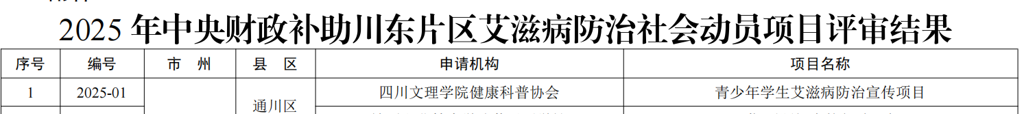 7月9日,学院健康科普协会青少年学生艾滋病防治宣传项目经评审,成功获批2025年中央财政补助川东片区艾滋病防治社会动员项目。